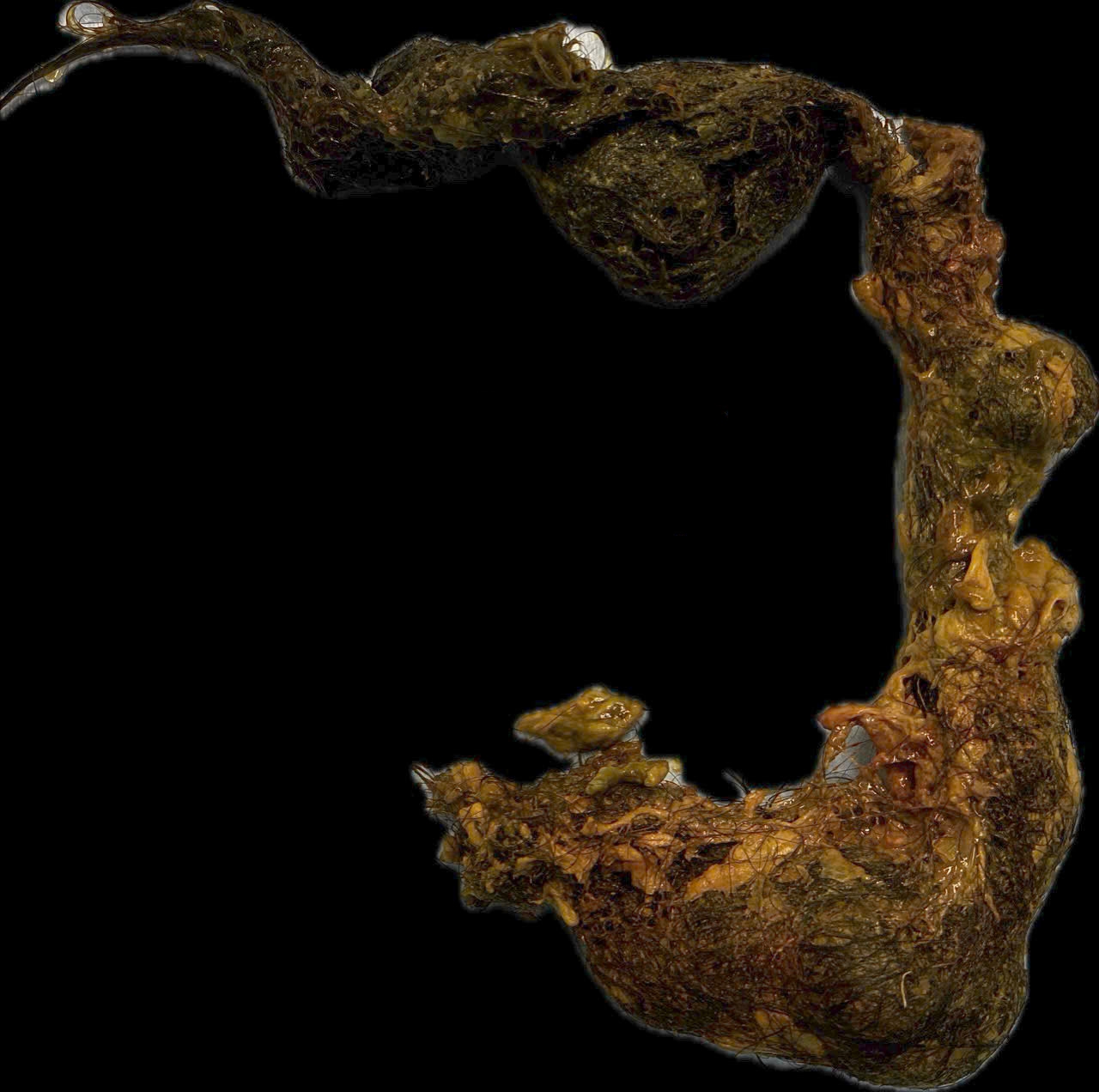 Hair cannot be digested. Over time, it accumulates and hardens into a mass that blocks the stomach outlet and can lead to complete intestinal obstruction. This is a complication of trichophagia, a condition that often progresses silently over many years.