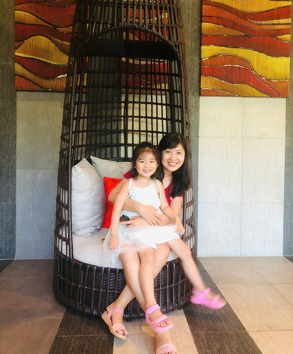 Kim Cuong and her daughter Tam An during a family trip.