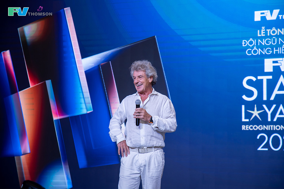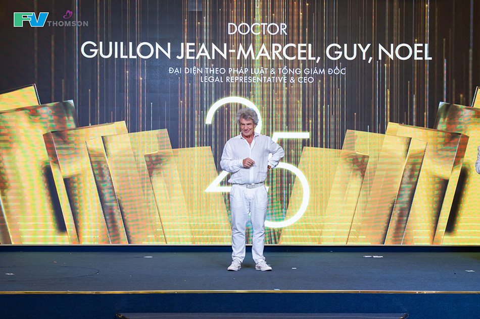 Khép lại buổi lễ là một khoảnh khắc vô cùng trang trọng và xúc động khi toàn thể Ban Giám đốc tiến lên chúc mừng và cả hội trường đã đứng dậy dành những tràng pháo tay nồng nhiệt để vinh danh Tổng Giám đốc Jean-Marcel Guillon – với 25 năm kiến tạo và toàn tâm cống hiến cho Gia đình FV. Nếu FV là một con thuyền, thì bác sĩ Jean-Marcel chính là vị thuyền trưởng kiên cường đã chèo lái qua bao thăng trầm suốt một phần tư thế kỷ.