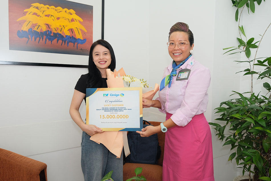 Chương trình Khảo sát Chất lượng Dịch vụ Bệnh viện FV diễn ra hàng quý với sự đồng hành của tổ chức Cimigo. Thông qua chương trình quay số ngẫu nhiên, người trúng thưởng sẽ là người may mắn nhất trong số các khách hàng tham gia khảo sát. Chương trình Khảo sát Chất lượng Dịch vụ nhằm giúp Bệnh viện FV nhận được ý kiến đánh giá của các khách hàng đã và đang sử dụng dịch vụ chăm sóc sức khỏe tại FV. Qua đó, FV sẽ cải tiến dịch vụ tốt hơn nhằm mang đến những trải nghiệm tốt nhất cho bệnh nhân trong quá trình điều trị tại đây.