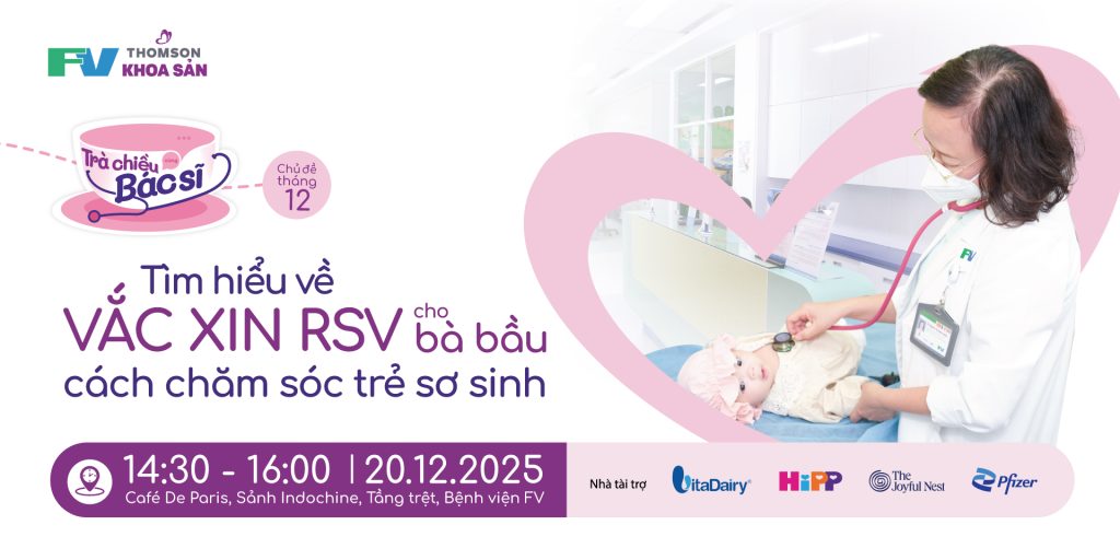 Với mong muốn mang đến không gian trò chuyện nhẹ nhàng nhưng giàu giá trị thực tiễn, Bệnh viện FV trân trọng mời ba mẹ tham dự chương trình “Trà Chiều Cùng Bác Sĩ” tháng 12, với chủ đề: “Vắc xin RSV cho mẹ bầu & Nền tảng vững chắc khi chăm sóc trẻ sơ sinh”.